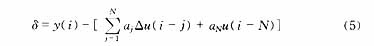 ??? 其中y(i)表示當(dāng)前測量值,u和Δu分別為括號內(nèi)采樣時刻的輸入和輸入變化,ai是單位階躍響應(yīng)系數(shù),N是系統(tǒng)的模型時域。假設(shè)擾動為階躍擾動。
