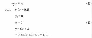硬約束為:-0.5≤y1≤0.5;-0.5≤ui≤0.5,i=1,2,3