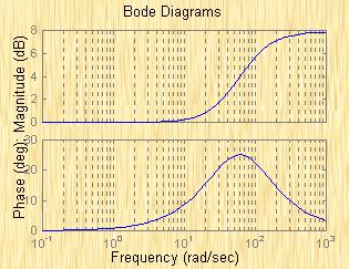 (5)確定超前校正網(wǎng)絡(luò)的轉(zhuǎn)折頻率 ,并確定超前裝置的傳遞函數(shù)。