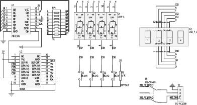 ??? 顯示屏驅(qū)動(dòng)電路的主要作用是接受來(lái)自控制系統(tǒng)的數(shù)字信號(hào),將發(fā)光二極管點(diǎn)亮,實(shí)現(xiàn)在LED顯示屏上的信息的顯示。在顯示電路中采用雙4位LED顯示,測(cè)量值和目標(biāo)值同時(shí)顯示,LED顯示屏使用的驅(qū)動(dòng)電路是基于通用型集成電路移位寄存器74HC595和6B595來(lái)設(shè)計(jì)的,如圖4所示。