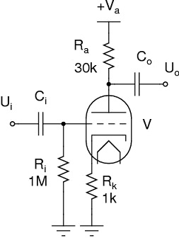 電路中 Rk由于陰極電流,會產(chǎn)生幾伏的壓降。由于柵極通過電阻接地,柵極就自然產(chǎn)生了相對于陰極的負柵壓。這種偏置方法還有自動穩(wěn)定的作用。例如某外界原因?qū)е玛帢O電流(就是屏極電流,柵極電流為零)變大,則柵壓自動變負,陰極電流又自動變小。但是高檔的電子管放大器是不這樣偏置的,因為這樣偏置不精確。通常使用電阻分壓網(wǎng)絡實現(xiàn)。當然沒有了上述穩(wěn)定性。