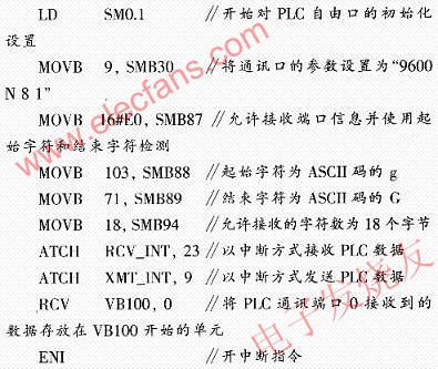 由于遠(yuǎn)程PLC采用的是自由口用戶通訊協(xié)議,所以對PLC的自由口通訊必須做如下初始化設(shè)置: