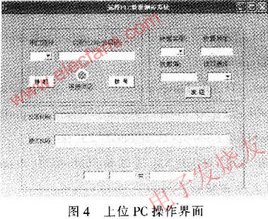 系統(tǒng)上位的人機(jī)界面是用VB編程,提供人機(jī)交互操作界面及數(shù)據(jù)選擇和相應(yīng)的數(shù)據(jù)處理等功能。系統(tǒng)上位的操作界面如圖4所示。在操作界面的左上部是通訊鏈接控制框,這里只需要正確選擇PC的串口并輸入遠(yuǎn)程PLC所連接的電話號碼后即可撥號鏈接,遠(yuǎn)程的無線GSM MODEM模塊摘機(jī)響應(yīng)一般設(shè)置為鈴響后自動摘機(jī),通訊鏈接建立后,當(dāng)上位PC檢測到串口端的數(shù)據(jù)載波DCD信號后,通訊鏈接控制框中的“鏈接狀態(tài)”指示燈由紅變綠,表示通訊鏈路已成功建立。撥號或掛機(jī)的操作均是通過對GSM MODEM模塊發(fā)送AT指令執(zhí)行的。歡迎轉(zhuǎn)載,本文來自電子發(fā)燒友網(wǎng)(http://www.greenbey.cn/)