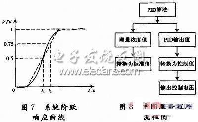 為防止調(diào)節(jié)傳感器接收靈敏度時(shí)由于超調(diào)或者失調(diào)引起的振蕩,使儀器讀數(shù)能夠平緩上升或者下降,這里采用PID算法加以調(diào)節(jié),以對(duì)振蕩進(jìn)行抑制,在控制過程中采用智能判斷的方法使系統(tǒng)處于最優(yōu)狀態(tài)。PID調(diào)節(jié)器具有規(guī)律簡(jiǎn)單,運(yùn)行可靠,易于實(shí)現(xiàn)等特點(diǎn)。