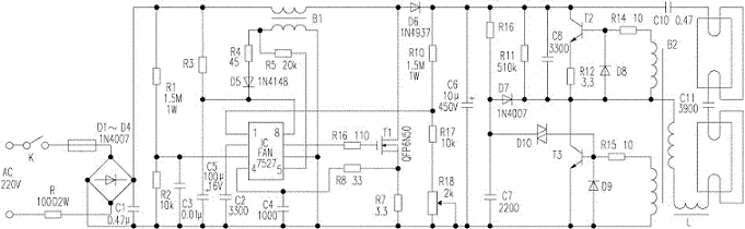 電子節(jié)能燈電路原理圖一:
