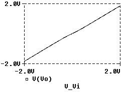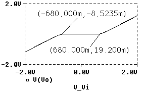 再設(shè)置直流掃描分析(DC Sweep),信號源Vi的掃描范圍為-2V~+2V。得電壓傳輸特性如圖d所示,由圖中看出,輸入電壓在-0.68V~+0.68V范圍內(nèi)出現(xiàn)失真。