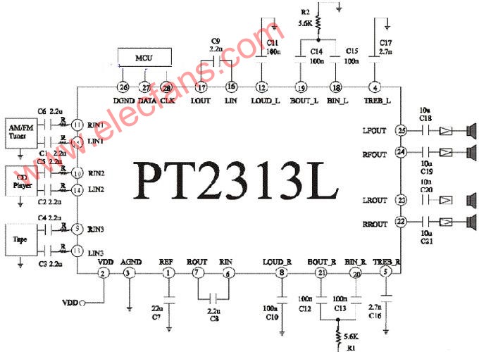 下面是PT2313電路圖