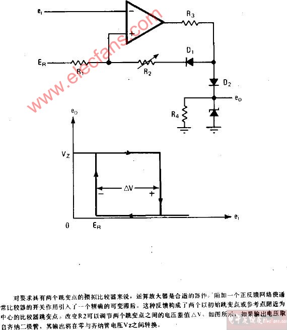 滯后可變式比較器(無需偏移初始跳變點(diǎn))電路圖