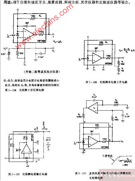 OPT202直流恢復(fù)抑制無(wú)用的穩(wěn)定背景光的光檢測(cè)電路圖