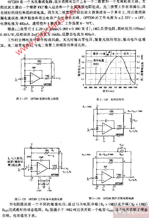 OPT209具有電流輸出的光檢測(cè)電路圖