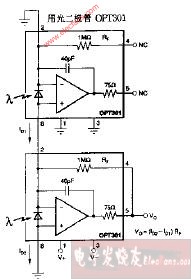 電子發(fā)燒友網(wǎng)>電子技術(shù)應(yīng)用>電路原理圖>放大電路圖>運(yùn)算放大器電路>OPT301差光檢測電路圖