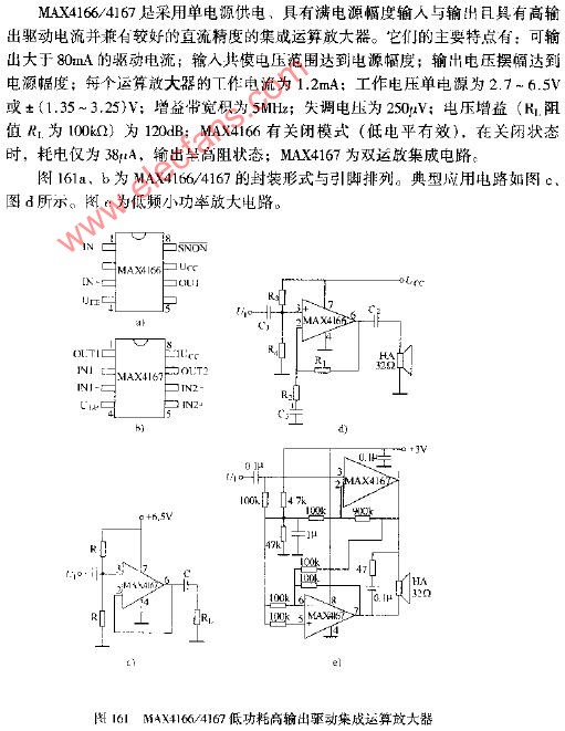 MAX4366 4167低功耗高輸出驅(qū)動(dòng)集成運(yùn)算放大器電路圖