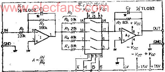 按1,2,5倍的順序,最大可設(shè)定到200倍的可編程增益放大器電路圖