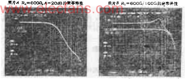 從照片B可以看出,它的尖鋒約為4DB。A=20DB出現(xiàn)尖鋒這是可以予計(jì)到的。把輸入電平降低10DB,負(fù)載電阻取100歐時(shí),-3DB帶寬可延至50MHZ(照片B下面曲線)。