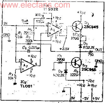 由于輸出電平轉(zhuǎn)移電路的偏流取決于齊納二極管D2的VZ,所以應(yīng)注意其偏差,可用電阻R調(diào)整。