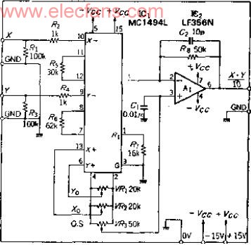 MC1494L是雙平衡差動(dòng)放大器、電壓-電流轉(zhuǎn)換電路等構(gòu)成的單片模擬乘法運(yùn)算IC,是一種可由外接器件設(shè)定工作條件的通用乘法電路,能夠進(jìn)行4象限乘法運(yùn)算,適用范圍于輸入電壓為正負(fù)10V的各種運(yùn)算電路。