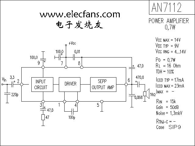 AN7112設(shè)計的0.5W單聲道OTL放大電路