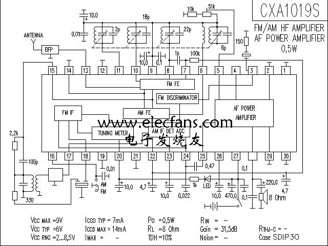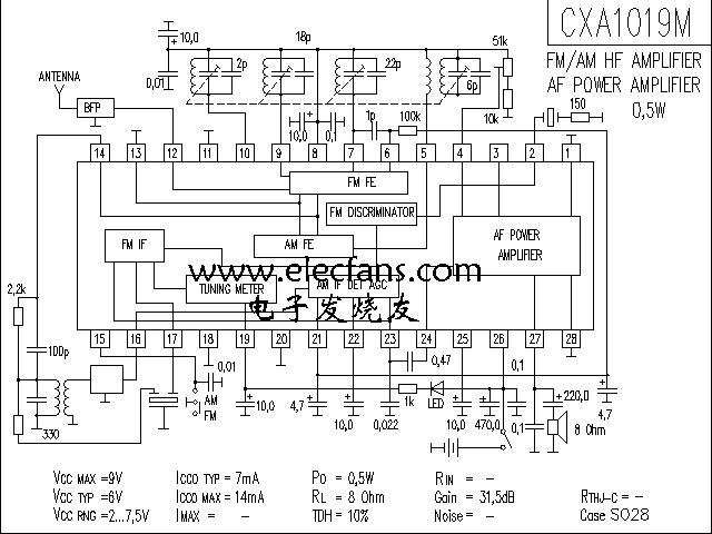 CXA1019S 調(diào)頻調(diào)幅收音機電路