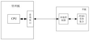 在一個(gè)獨(dú)立的機(jī)框中各單板中JTAG設(shè)備的邊界掃描以及更新可以由單板獨(dú)立完成,或由其他控制板通過(guò)某種類型總線傳送到該單板進(jìn)行,從而可實(shí)現(xiàn)自更新/自測(cè)試或者遠(yuǎn)程更新/遠(yuǎn)程測(cè)試,如圖4所示。圖中管理板與單板之間的通信總線可以有多種選擇,但是根據(jù)ATCA的規(guī)范,管理板與節(jié)點(diǎn)板之間只有IPMB總線,而IPMB即為IIC總線,IIC總線的全速只有400Kb/s,在進(jìn)行大量測(cè)試以及更新數(shù)據(jù)傳送時(shí)這種速錄一定會(huì)成為瓶頸。此為JTAG技術(shù)在ATCA中應(yīng)用的一個(gè)不利因素。