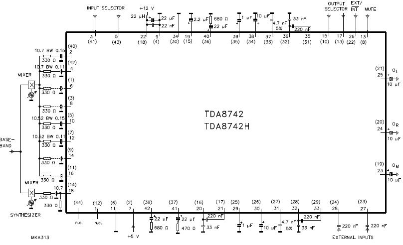 8740 andTDA8741. The device contains the functionality of theTDA8740 and TDA8741 together with a synthesizer, mixerand I2C-bus c