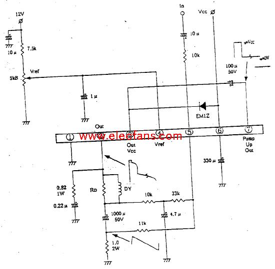D7242P是內部帶功放的場掃描電路.它的基本功能和UPC 1031HZ相似,內部由場同步電路,場振蕩電路,鋸齒波形成電