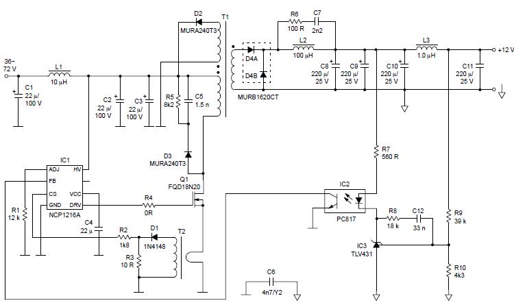 NCP1216A執(zhí)行DC / DC單端正激變換器