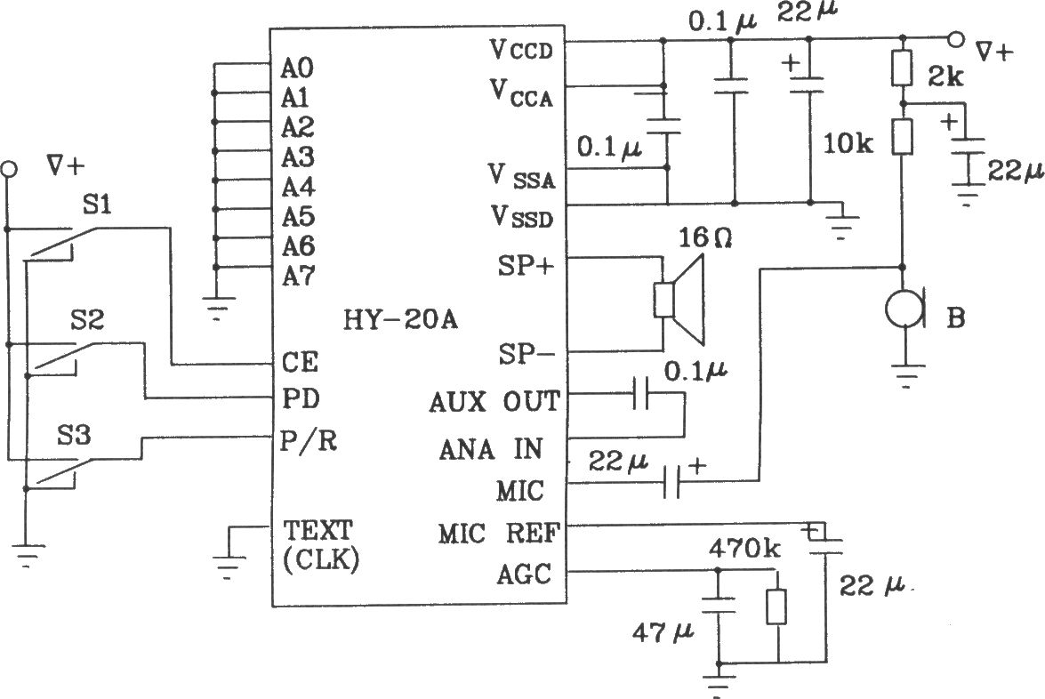 語音芯片應(yīng)用電路功效①它表述了語音芯片各腳位外電路構(gòu)造、電子器件主要參數(shù)等,進(jìn)而表達(dá)了某個(gè)語音芯片的詳細(xì)工作中狀況。②在一些語音芯片應(yīng)用電路中,畫出語音芯片的內(nèi)部電路框圖,這對(duì)于分析語音芯片應(yīng)用電路