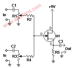 雙結(jié)型場效應(yīng)管混頻器射頻電路(Dual JFET mixer RF circuit)