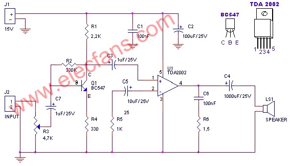 聲頻率的前置放大器電路 (Amplifier of acoustic frequencies with preamplifier)