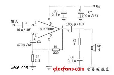 9W音頻功率放大(μPC2002)電路圖