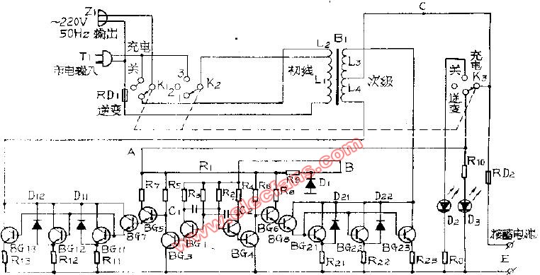 可調(diào)充電電流自動(dòng)應(yīng)急電源電路 (國外電源電路)