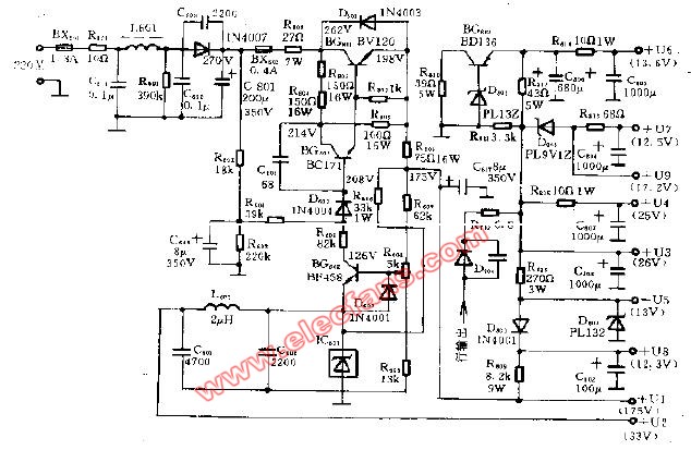 金星牌B40-A型電視機(jī)穩(wěn)壓電源電路