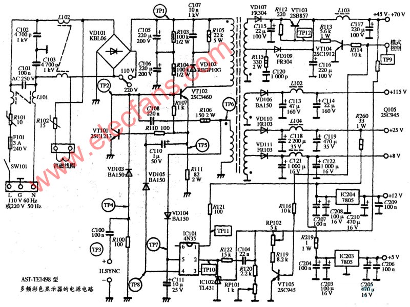 AST-4型彩色顯示器電源電路圖