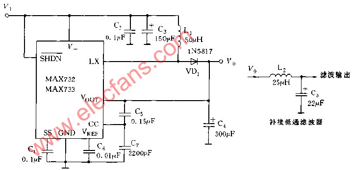 MAX743升壓開關(guān)型DCDC變換器應(yīng)用電路