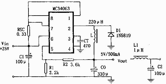 MC34063集成開關(guān)穩(wěn)壓器電路圖