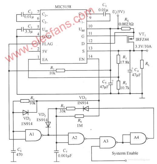 MIC5158姐成的具有短路保護(hù)功能的5V、3.3V/10A