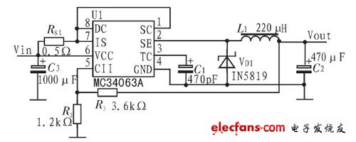 MC34063構(gòu)成的降壓電路