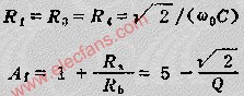 這種電路的優(yōu)點是可改變RA/RB的比值來調(diào)整帶寬而不影響中心頻率。其缺點是Q值易受元件性能變化影響,所以它僅適宜于Q值較低的情況。