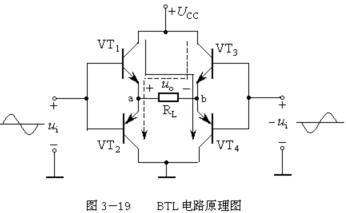BTL功率放大器亦稱橋式推挽電路,功率放大器的輸出級與揚聲器間采用電橋式的連接方式,主要解決OCL、OTL功放效率雖高,但電源利用率不高的問題。