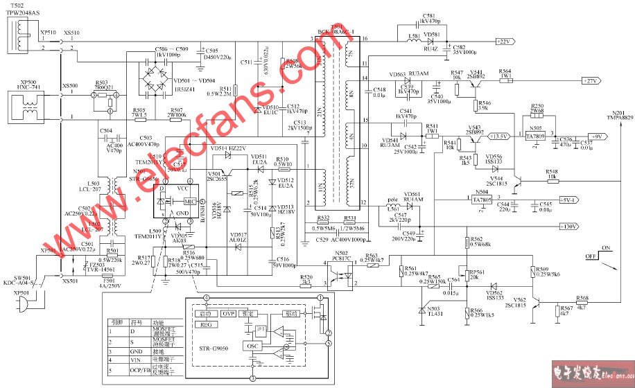 創(chuàng)維3T30機芯彩電開關(guān)電源電路(STR-F6653)
