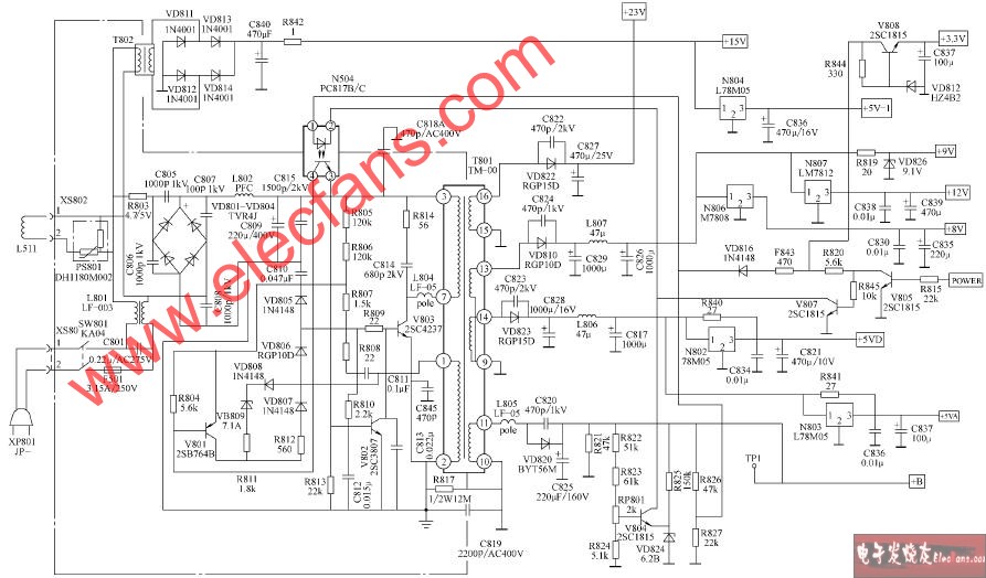 長(zhǎng)虹CN-9機(jī)心彩電開(kāi)關(guān)電源電路