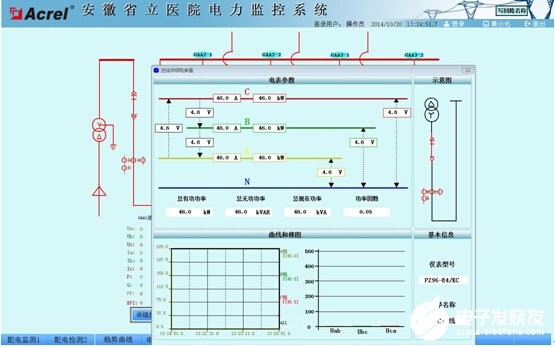 系統(tǒng)進行存儲并實時更新。 1.2實時畫面 智能電力監(jiān)控系統(tǒng)中呈現(xiàn)的實時圖像功能指的就是一次接線圖,其能夠時刻顯示醫(yī)院配電程序的運行情況、電流和電壓的強弱以及諧波畸變率等的實際狀況,方便相關(guān)工作者能夠?qū)崟r查看配電程序的運