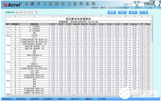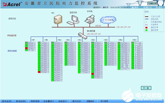 757 介紹平頂山第二人民醫(yī)院,采用智能電力儀表、采集配電現(xiàn)場的各種電參量和開關(guān)信號。系統(tǒng)采用現(xiàn)場就地組網(wǎng)的方式,組網(wǎng)后通過現(xiàn)場總線通訊并遠(yuǎn)傳至后臺,通過Acrel-3000型電能管理系統(tǒng)實現(xiàn)配電室配電回路用電的實時監(jiān)控和管理,建立電能多級計量體系,明確能源去向,提供用能分析依據(jù),為節(jié)能改造提供數(shù)據(jù)支持。