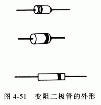 變阻二極管一般采用軸向塑料封裝,如圖4-51所示。圖4-52是其應(yīng)用電路。