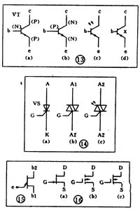 晶閘管、單結(jié)昌體管、場(chǎng)效應(yīng)管的符號(hào)