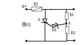 1 直流觸發(fā)電路:如圖G2是一個(gè)電視機(jī)常用的過壓保護(hù)電路,當(dāng)E+電壓過高時(shí)A點(diǎn)電壓也變高,當(dāng)它高于穩(wěn)壓管DZ的穩(wěn)壓值時(shí)DZ道通,可控硅D受觸發(fā)而道通將E+短路,使保險(xiǎn)絲RJ熔斷,從而起到過壓保護(hù)的作用。
