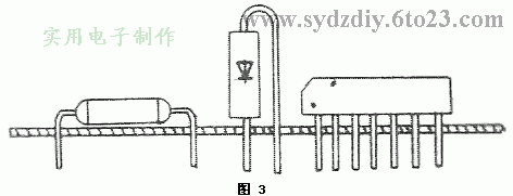 ?、刍旌鲜?/STRONG>。為了適應(yīng)各種不同條件的要求或某些位置受面積所限,在一塊印刷電路板上,有的元器件采用直立式安裝,也有的元器件則采用俯臥式安裝。這受到電路結(jié)構(gòu)各式以及機(jī)殼內(nèi)空間尺寸的制約,同時(shí)也與所用元器件本身的尺寸和結(jié)構(gòu)形式有關(guān),可以靈活處理。見圖3。