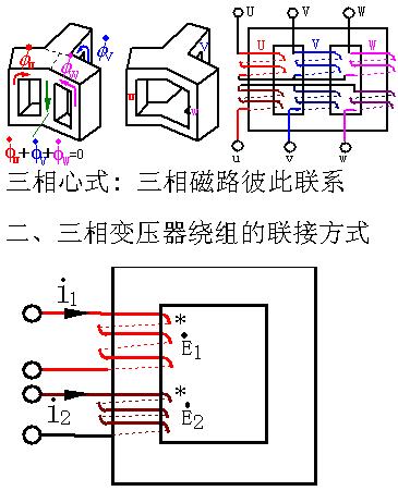 電力工業(yè)中,輸配電都采用三相制。變換三相交流電電壓,則用三相變壓器。可以設(shè)想, 把三個單相變壓器拼合在一起, 便組成了一個三相變壓器,各相磁通都經(jīng)過中間鐵心。
