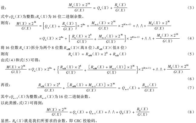 3 CRC 校驗(yàn)是一種在數(shù)據(jù)通信系統(tǒng)和其它串行傳輸系統(tǒng)中廣泛使用的錯(cuò)誤檢測手段。通用的CRC 標(biāo)準(zhǔn)有CRC-8、CRC-16、CRC-32、CRC-CCIT,其中在網(wǎng)絡(luò)通信系統(tǒng)中應(yīng)用最廣