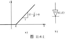 圖11-4-2a的非線(xiàn)性電阻特性曲線(xiàn)用折線(xiàn)表示后,等值電路如圖11-4-4所示。
